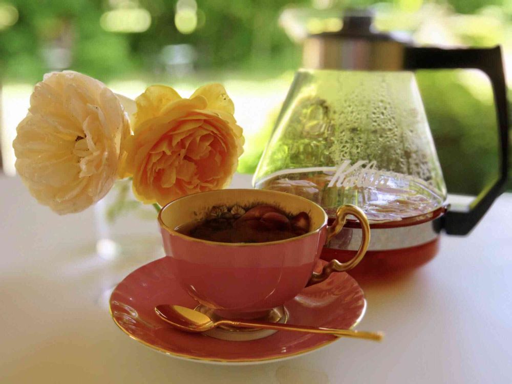 エマさん、咲いたので私も花びらを浮かべて紅茶飲んでみます❤