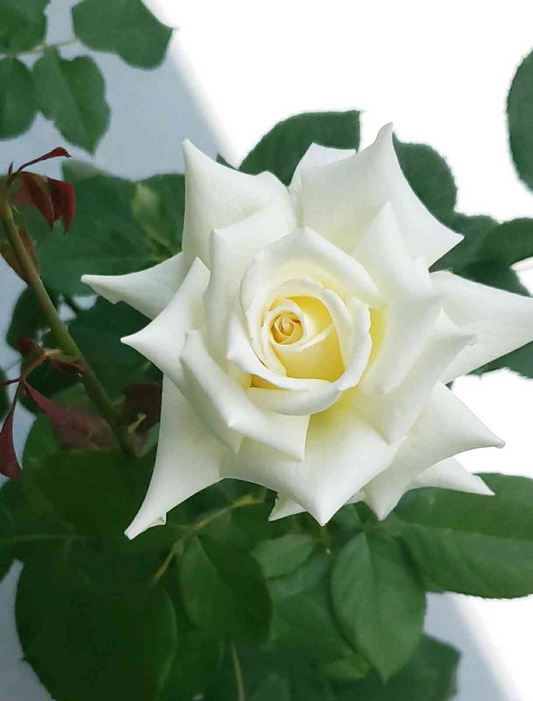 久々に剣弁咲きの薔薇を見た気がします。混じりっ気無しの白ですね!🌹品格有る薔薇ですネ⛪️