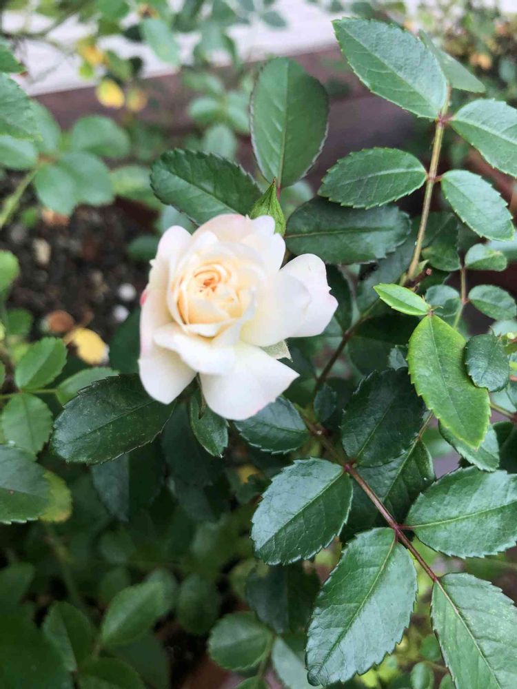 うちの2本のミニ薔薇グリーンアイスのうちの1本。このくらいの咲き具合が好きです💓