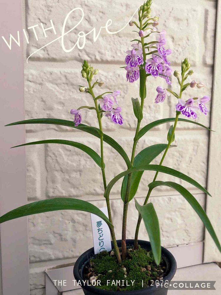 夢ちどり(蘭)😣アッチャー💦蘭なんて難しくてヤバい‼️焦る私に速攻アドバイスを頂きGS花友さんに感謝です❣️可愛くて癒される15センチくらいの小さな蘭❣️育てられるかなぁ私‥大切にします٩( ᐛ )و