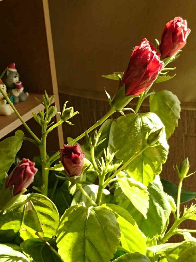 🏠部屋に入れたら1つずつ🌺咲いて蕾2つになったゎ