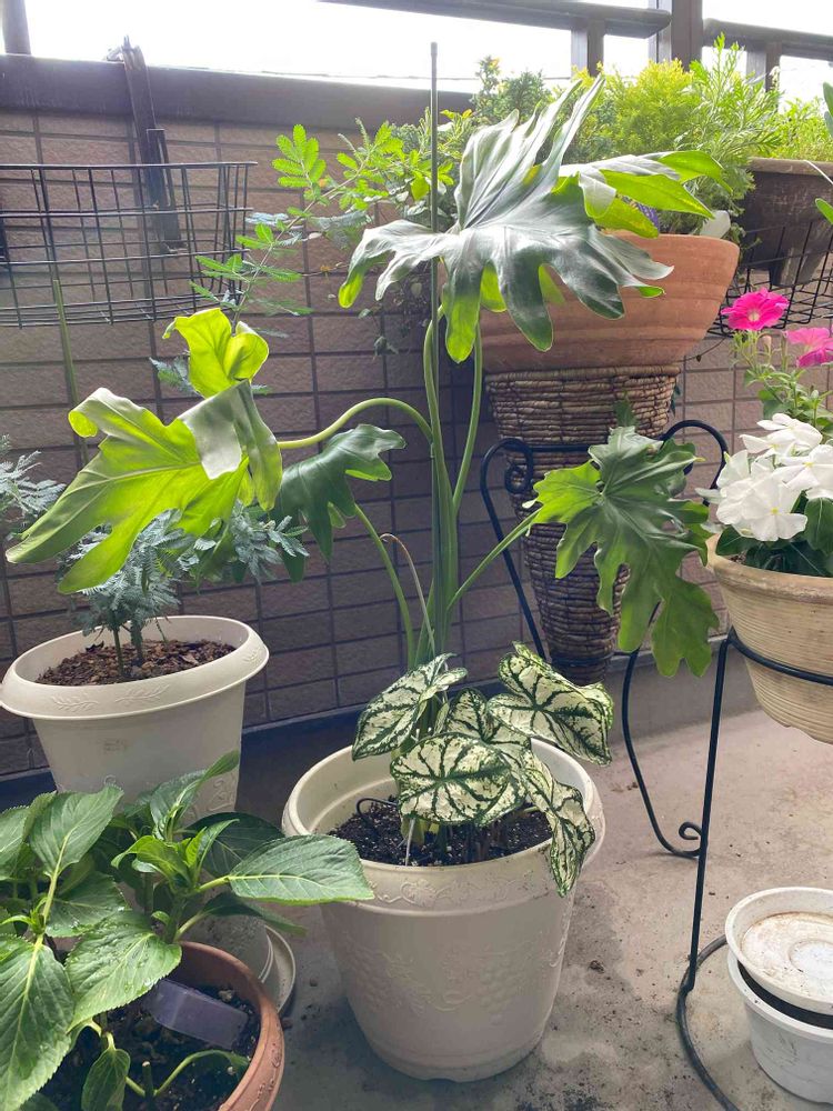 バルコニー/ベランダ,カラジューム,フィロデンドロンセロームの投稿画像