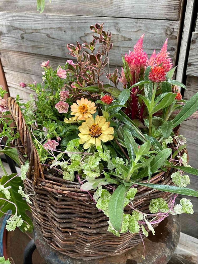 一昨日、珍しく職場に可愛いセロシアが入荷してたので久しぶりに職場で寄せ植えを作りました。