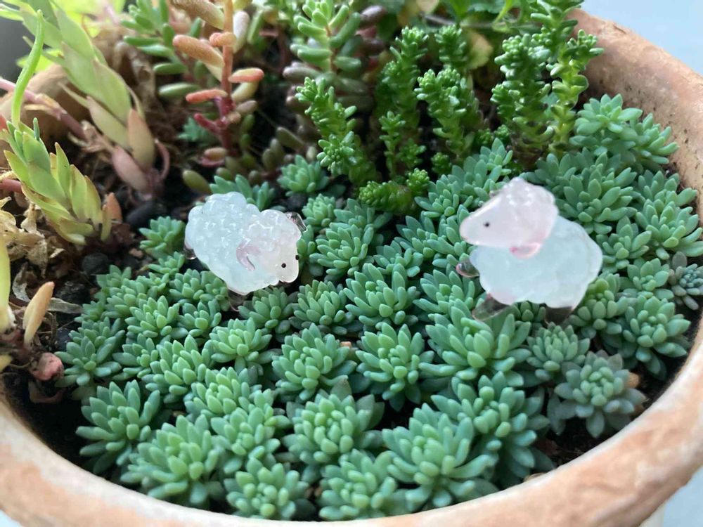 花が咲いていない側が寂しげなので、ヒツジ置いてみました。