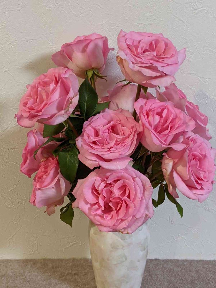 ビバリーはトゲがほとんどなく、強香なのに花弁の質が厚めで、柔らかな丸弁から波状弁、大輪なのに花持も良い方。なんといっても我が家では大ヤマセに吹かれても萎れず、葉っぱも傷まず、無農薬ですんなりと伸びる、必ずや花を咲かせる売ら切らないビバリーに惚れ込んでいます💕