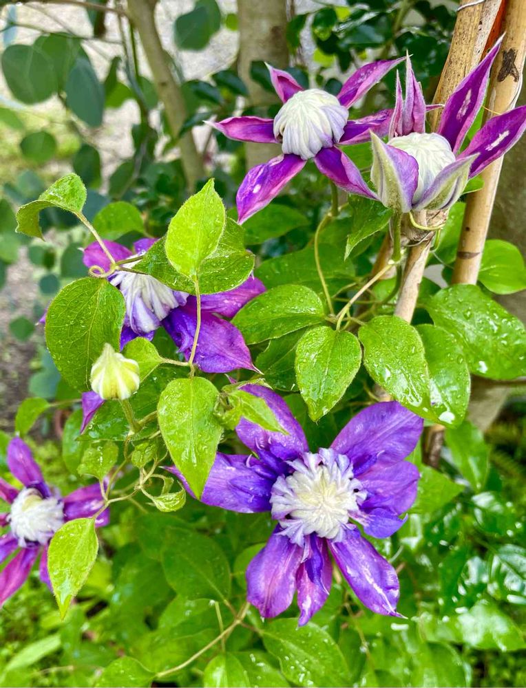 クレマチス マジックフォンテーン🤔かも🙄色が青系だからクレマチス・ジョセフィーヌとは違うけど同系列で花がめちゃくちゃ長持ち(1か月位持つ)真ん中の花びらがゆっくり開いてダリヤのようになる㊗️とても良いお買い物ですね👍‼️