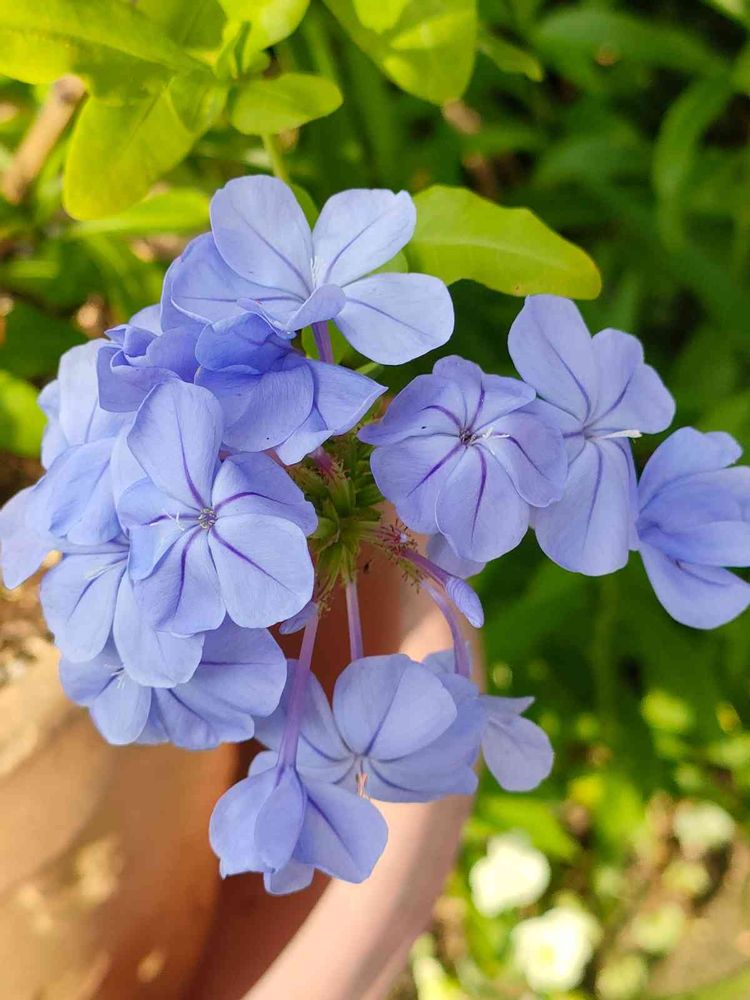 瑠璃色…去年迎えたルリマツリね鉢植えだから大変…ヒョロヒョロ伸びてきて暴れてる丸いしちゅうを刺して、暴れてヒョロヒョロ飛び出てる茎を切ったらお花が少ししか咲いてないわ😅