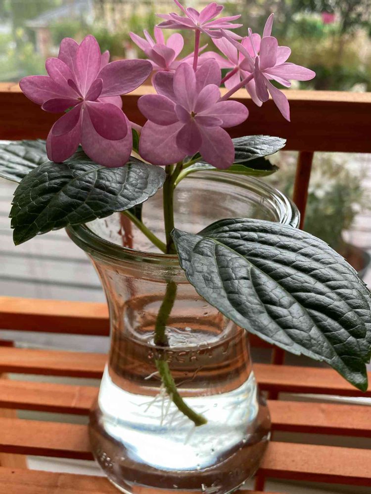 きれいなピンクに色変わりしました。紫陽花は水揚げが悪いイメージがあり、切り花にしていなかったのですが、この成果😆