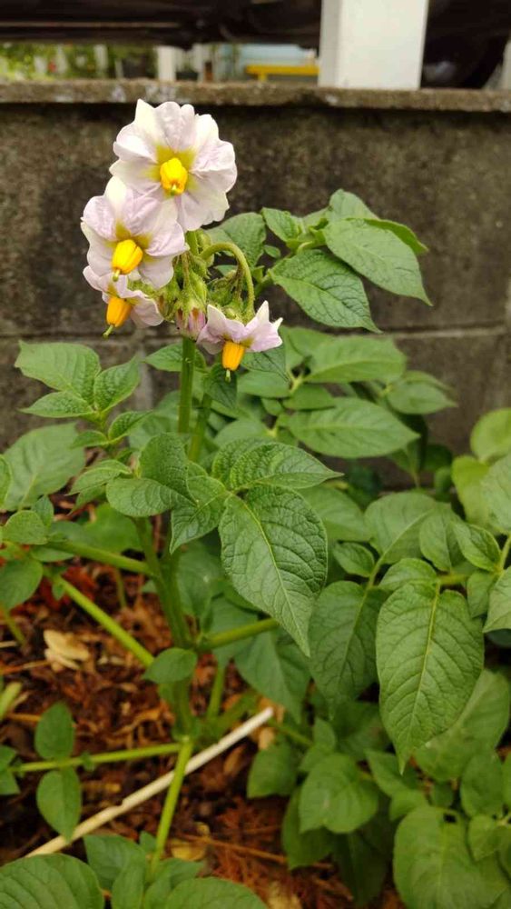 畑の隅っこにじゃがいもの花が咲いていました🌼