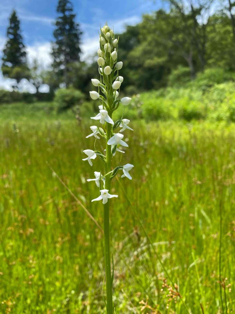 湿地に生えるランの仲間で、背が高くて白い花がきれいだった。