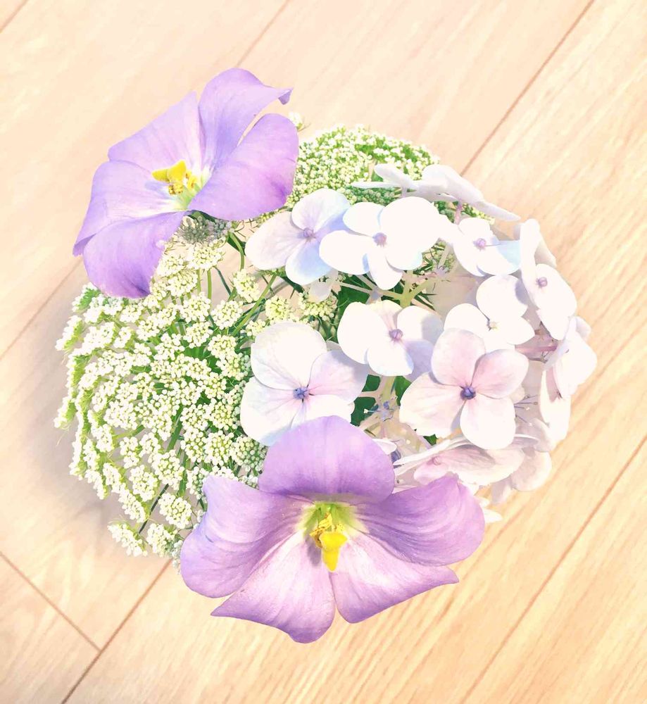 トルコキキョウと紫陽花が、くたっとしてきてて、奇跡的にバランス良くまとまってくれました💠✨