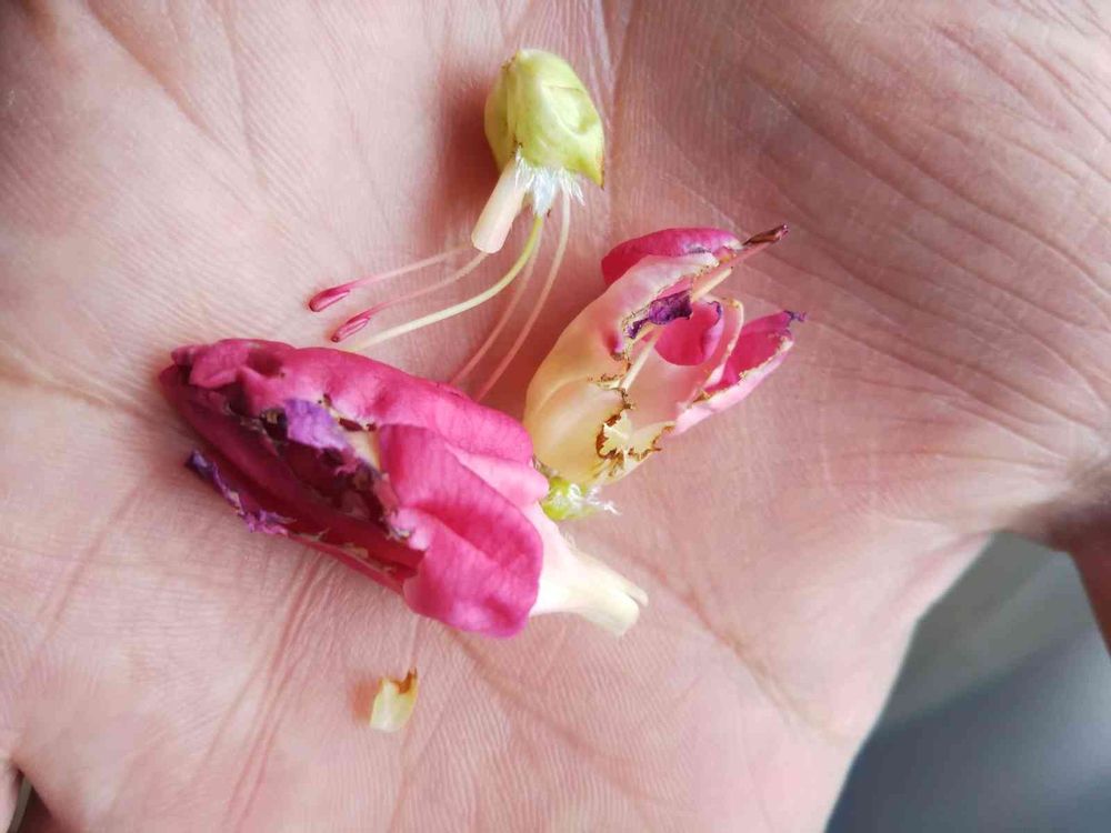 おはようございます、明け方は曇りから今は雨☔️本降りになりそうです🤣駐車場に掛けてた師匠からのさつきの花が🙍ポロリと一句 「 虫食われ 乙女は落ちた 梅雨の朝 (我が県梅雨入りした日)」😨😢😭順調に育ってたのに、無念です😰 見事に食われました、鉢等回りも探したが犯人いない🤔