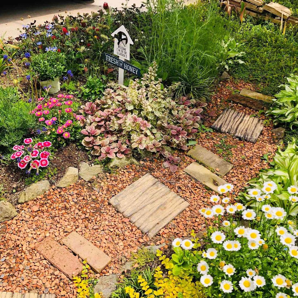 楽しそうなお庭〜🙆♀️🌸🌼🌸私んちもまず小道が理想で作ったんですが小道すぎて歩くのにバランスが、とっても余裕ある小道でゆっくりお庭を楽しめますねー🙆♀️💕