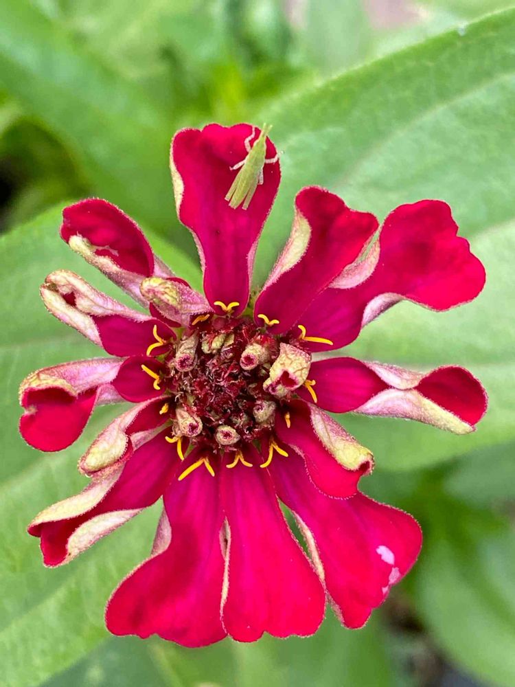 種蒔きから育った百日草にピンクのお花が咲きました。