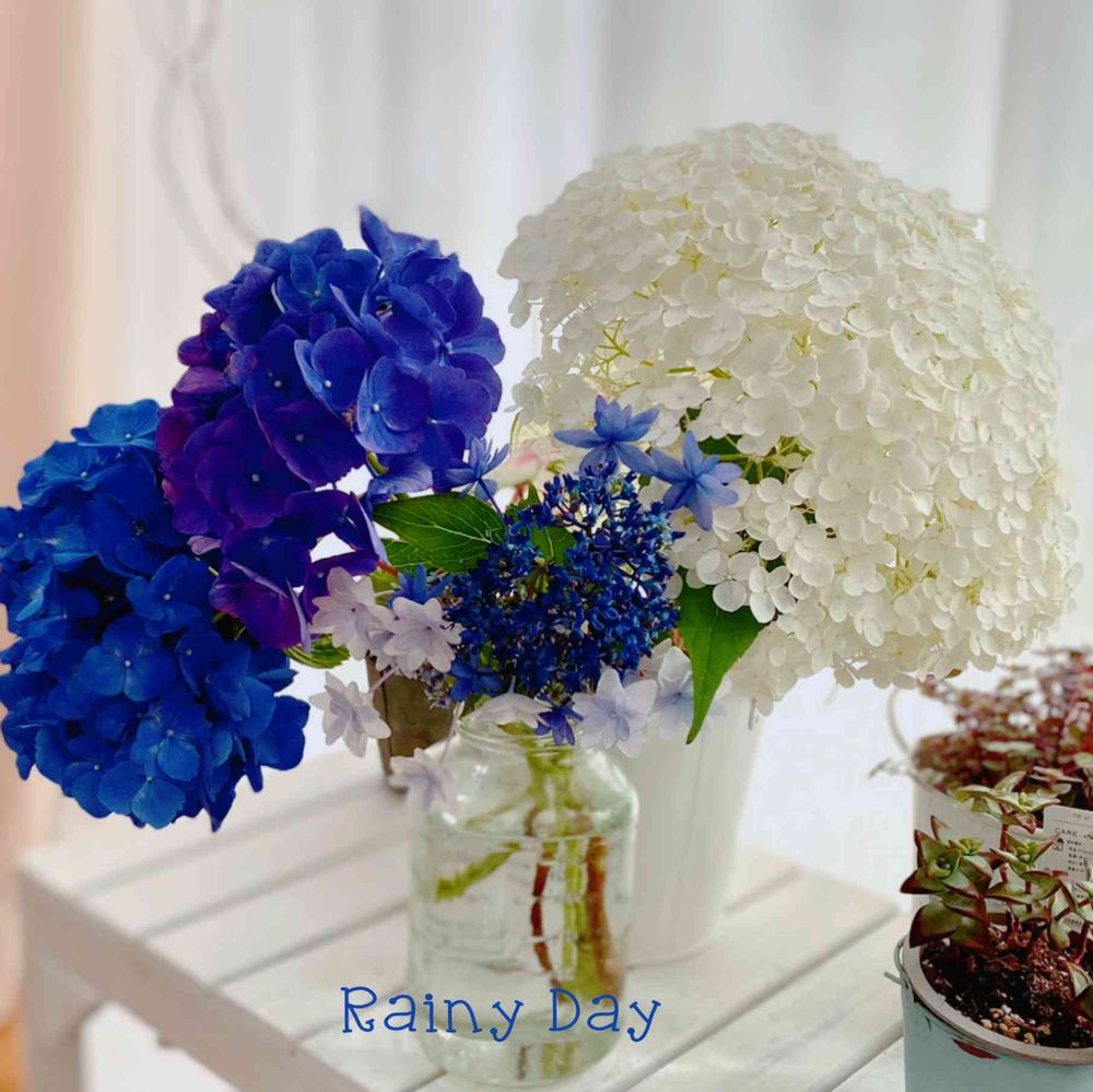 外は雨☔️なので、家でお庭の紫陽花を楽しみます💜😊💜