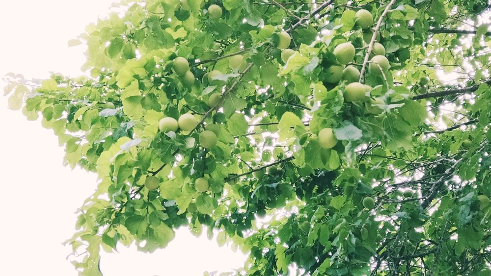 梅の実がたわわに付いてる、採っちゃ駄目だよ〜って!