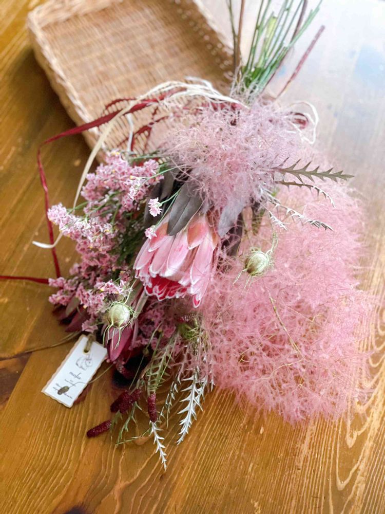 季節の草花をドライフラワーにしてスワッグやリースを作っています。