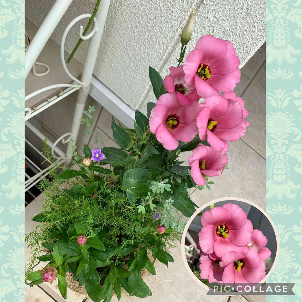 寄せ植えのトルコキキョウ(ピンク)が可愛く咲いています💕