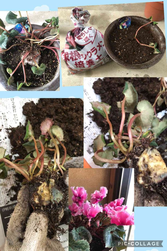 駄目元で掘り起こして腐っていた根っこを夫に切ってもらい鉢底石🪨入れて、シクラメン用(球根用)
