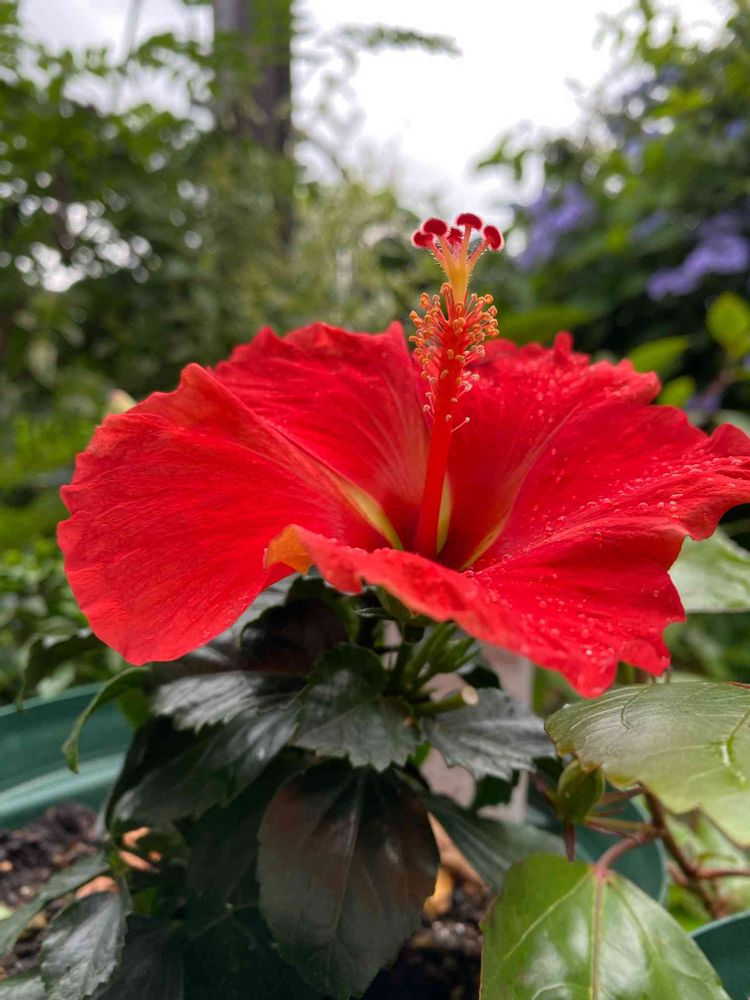 雨の日に鮮やかに咲きました🌺