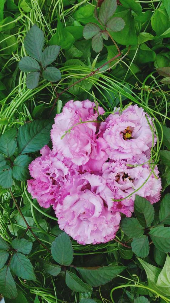 薮の蔓やそこに置かれた花の擬人化、面白いです😃