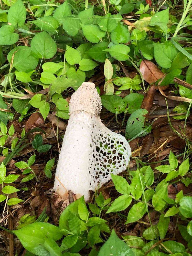 竹林の側に出てくるキノコの仲間だそうです。レースが広がるとドレス👗みたいにきれいなのですが、雨に打たれ半分になっていました🥲