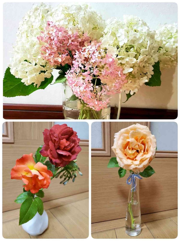 さん今晩は😄👋 沢山咲いて雨でお花が重くなって倒れているのをカットして飾りましたよ🎵この季節目を引きますよね~🎶