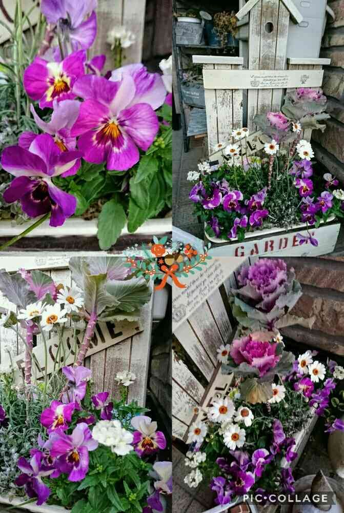 スミレって書いてあるけど、、パンジーと同じ位大きい 🎆🎆🎆お花の量が増えました💮💮葉牡丹も大きくなったねฅ'ω'ฅ