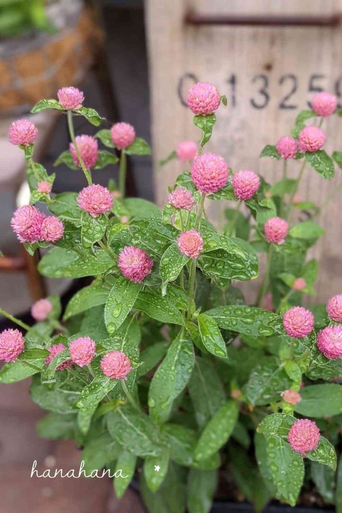 おはよう☺️千日紅、濡れてもかわいいよね💗