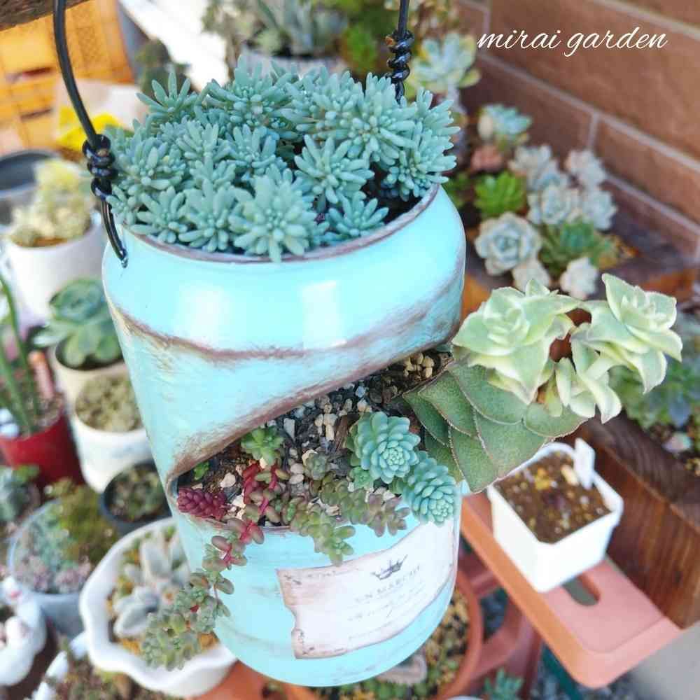いろんなとこの鉢から、🌱でてきた子を🌱寄せた自作リメ缶です☝️🤭❤