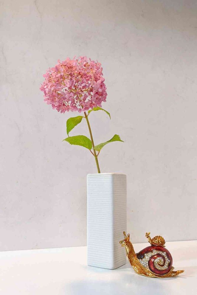 梅雨時のお庭が明るく柔らかになりそうでいいなぁと思っていましたピンクアナベル💗なかなか見かける機会がなかった…素敵なカタツムリでとても美しく飾られうっとりです💕