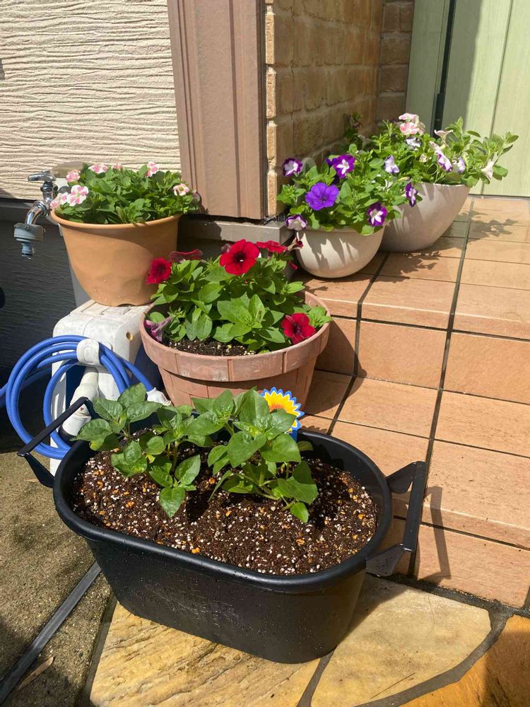 昨日買ってきた1000輪咲くヒマワリ🌻植え替え致しました(^-^)