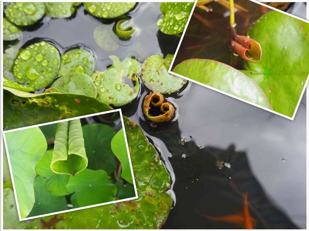 睡蓮の葉っぱはくるりと巻いた状態で成長し開いていくのですが、開き初めがハート型なので大変に可愛いです