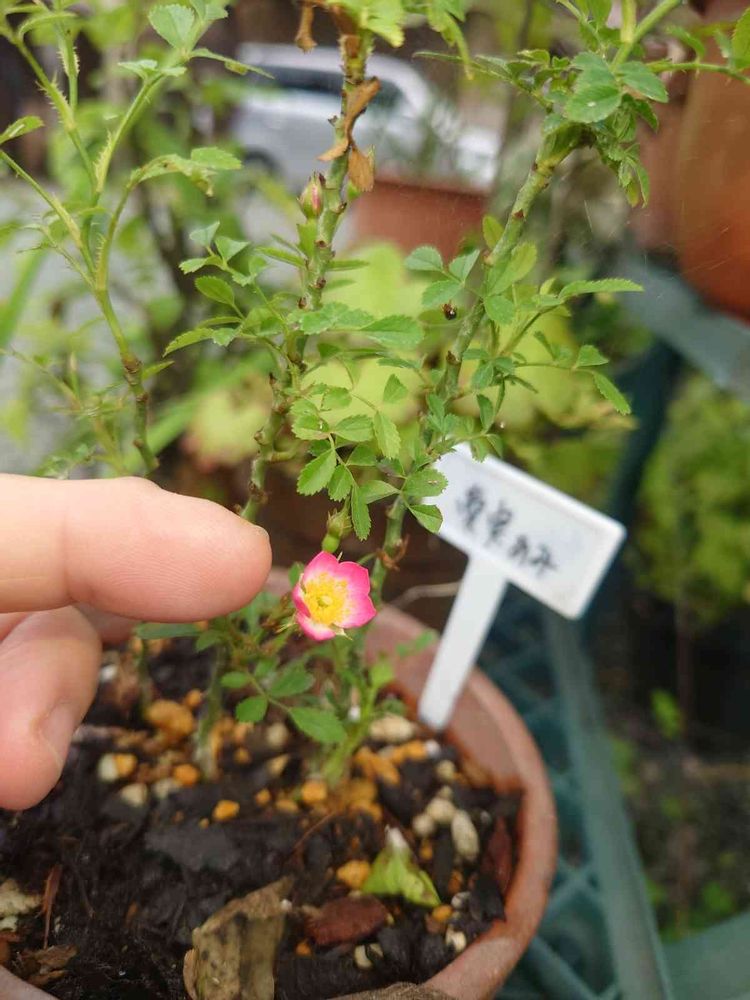 読み方は違うのだけど、娘と同じ名前のミニバラ!あまりにちっちゃくて、伝わらないかと、指を添えて、四苦八苦の撮影😆