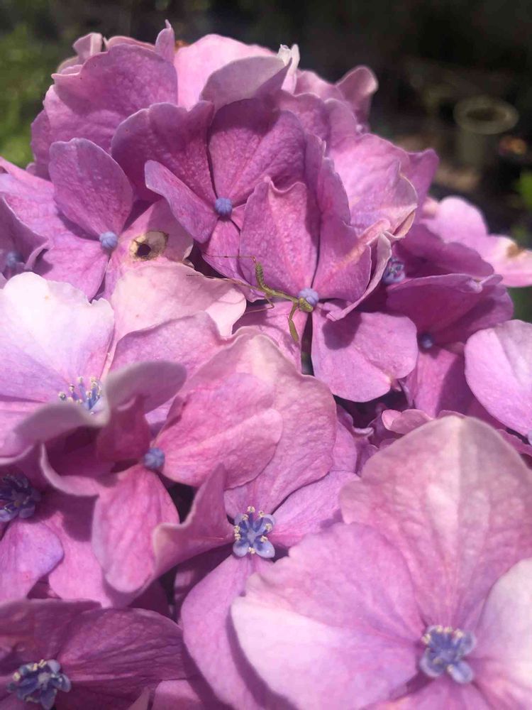 紫陽花が枯れてきて6月も後半ですので紫陽花を剪定してましたら紫陽花の上にカワイイお客さんがいました。カマキリはアブラムシやらなんやら虫を食べてくれるのでありがたい。