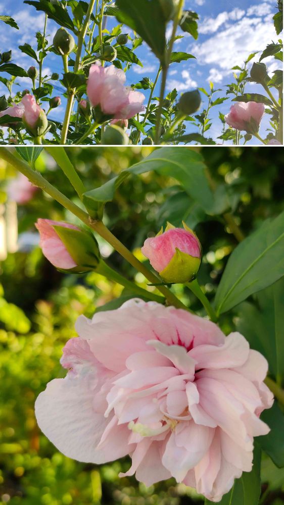 可愛いピンクの八重咲きのムクゲが咲き始めましたね😍