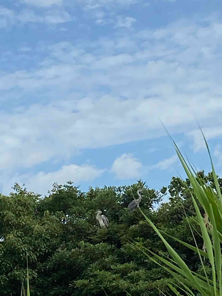 この頃、アオサギ、白鷺が増えてる様な気がします。繁殖期なのか、ガーガーと賑やかに鳴いています。綺麗な青空で気持ち良さそうに休憩してるみたいです💙☁️