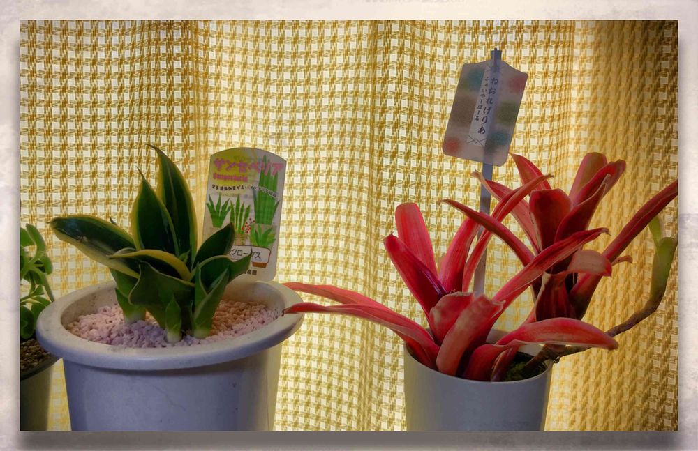 今日から仲間入りの観葉植物❣️サンセベリアブラックロータス280円とネオレゲリアファイアーボール380円です。サンセベリアは空気清浄効果あるそうなので、空気を綺麗にして貰おう💕