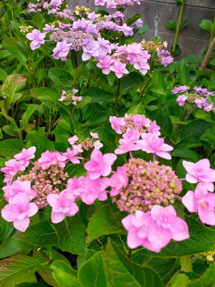 我が家の紫陽花城ヶ崎色合いがピンクや紫〜土のpHにてよって変わる💞🥰