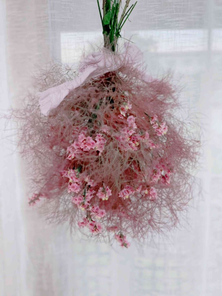 スモークツリーのピンクのボールスワッグ🌸🌸🌸