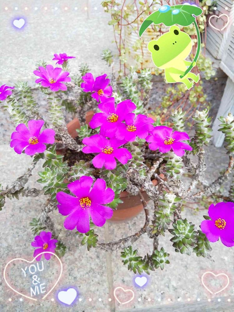 ポーチュラカの仲間だから、花数がメチャ色々で、今日なんてゼロだよ❣️笑笑 1つの日もあるからね笑ꉂ(ˊᗜˋ*)♡ やっぱり欲張りだから、たくさんが⸜(*ˊᗜˋ*)⸝ウレシイネ