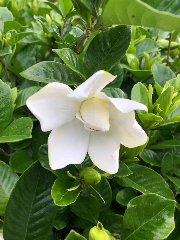 公園に行く遊歩道で、たくさんのくちなしの花が、いい香り💕