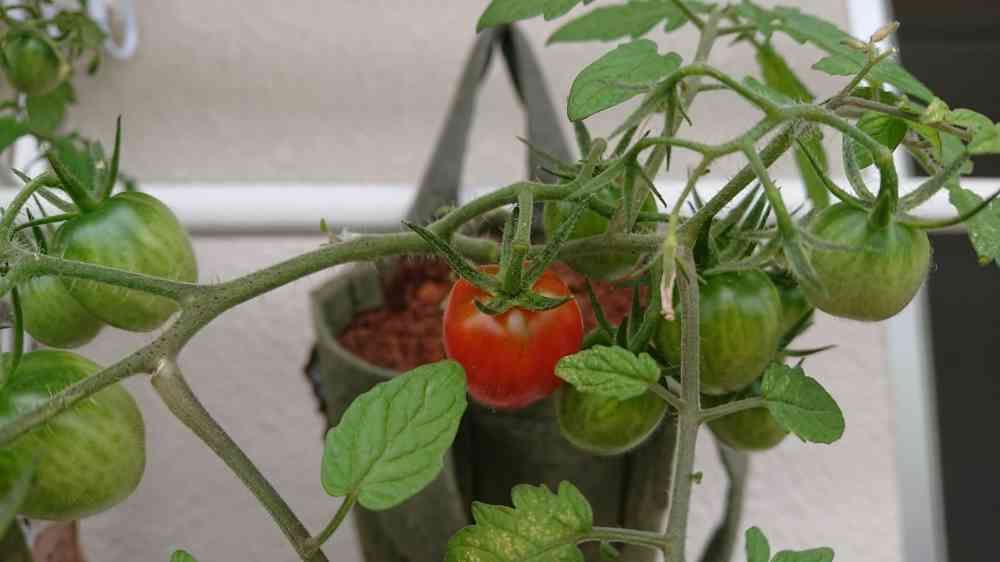 宙吊りになっているミニトマトちゃんが赤くなってきました😳🍅