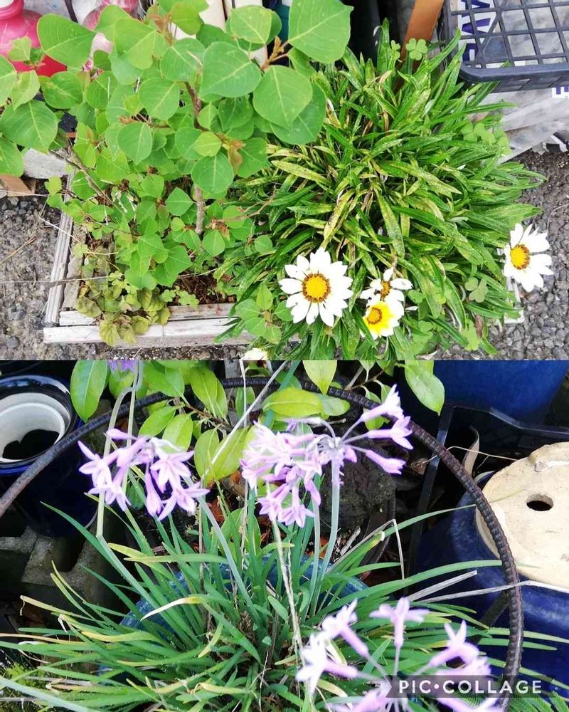 オシッコかけられて 萎れていたガザニア 雨のおかげで復活していた🎵 隣はナンキンハゼ