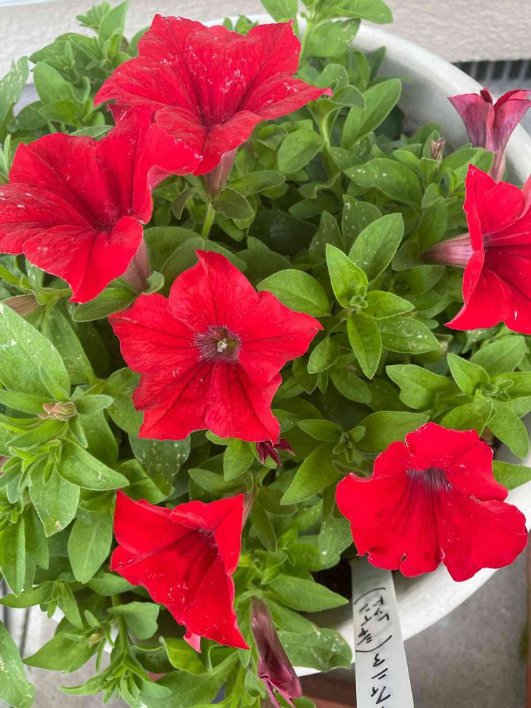 おはようございます。新しい1週間の始まりは、元気をもらえる色のサフィニア シャインレッドがお見送り!