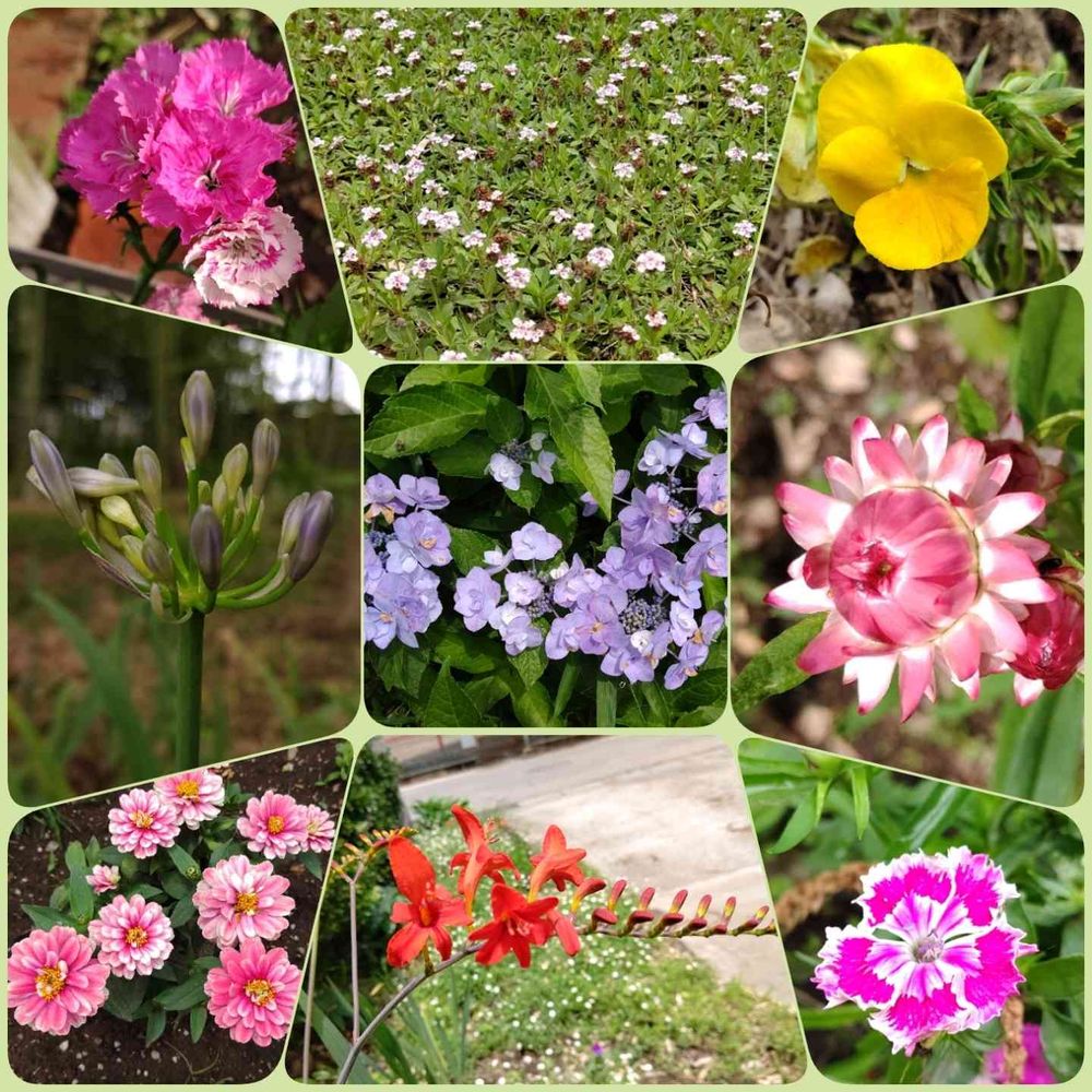左下のジニアは、娘の花壇の花です🧑たくさん咲いています🎵