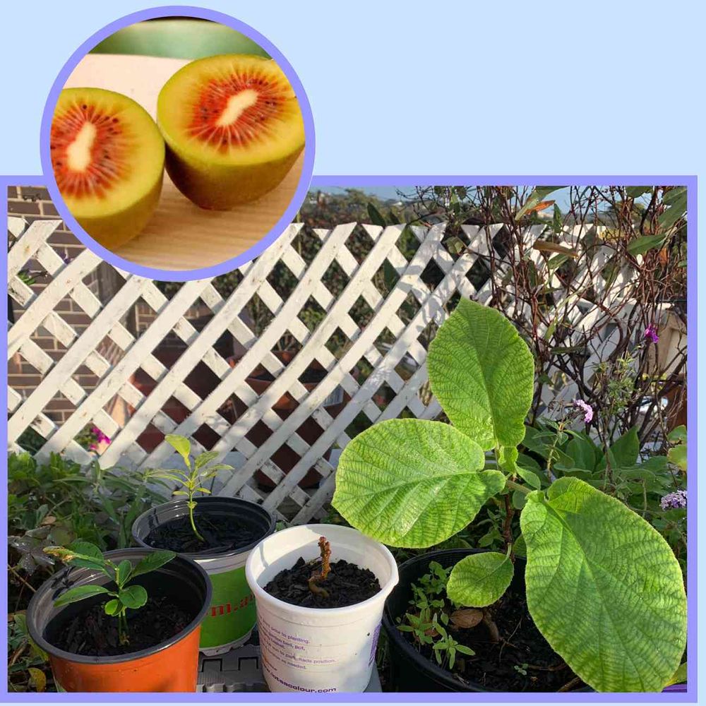 🇦🇺では寒い時期に出回る中心が赤くてとても甘いキウイフルーツの種を採ってまいてみたもの。