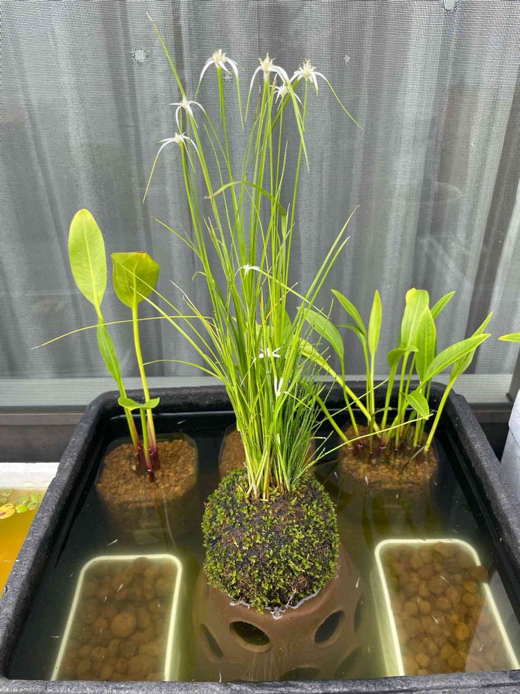 稚魚のビオトープ苔玉の苔が良い感じに