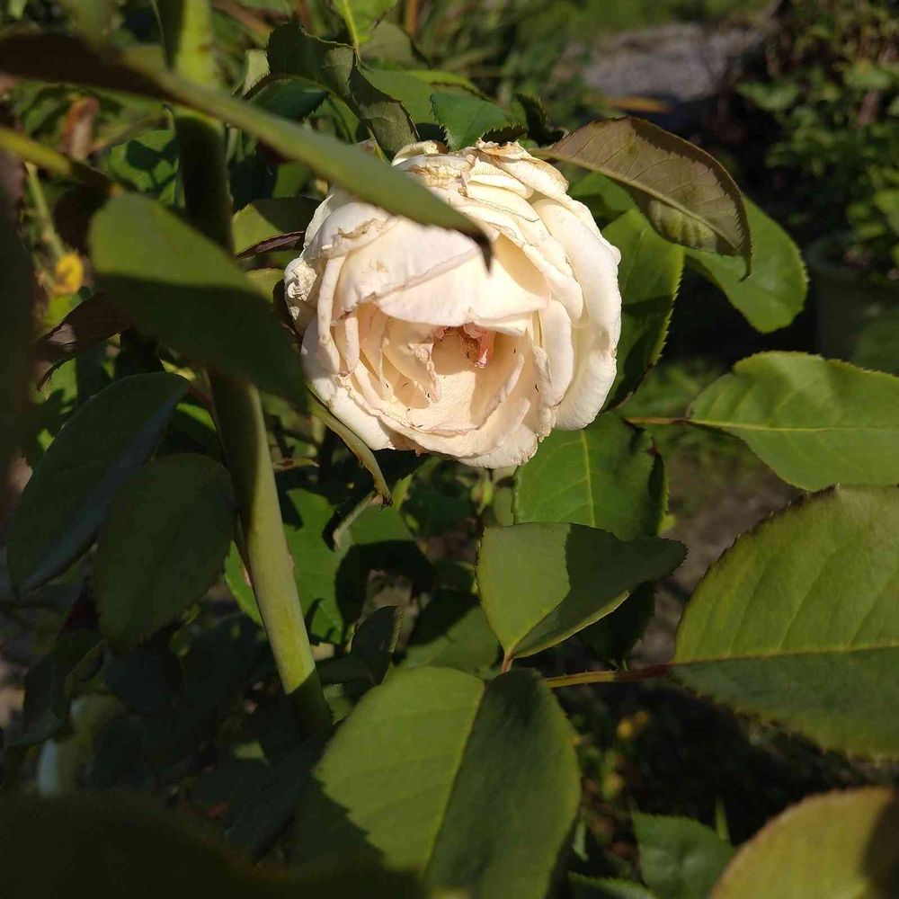 強香は花持ち悪い😓確かに‼️恋結びの無惨なこと‼️なまじ大輪で花弁数多いから暑さにあたるとキレイな姿を見せる前にダランとボーリングしつつのご臨終⤵️香る暇もなかったよ。いまブラインド✂したやつから蕾がひとつあるけど梅雨入りしたからキレイに咲けないだろうな