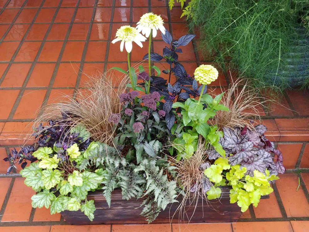 とてもステキな夏の寄せ植えですね💚プランターも雰囲気があります。
